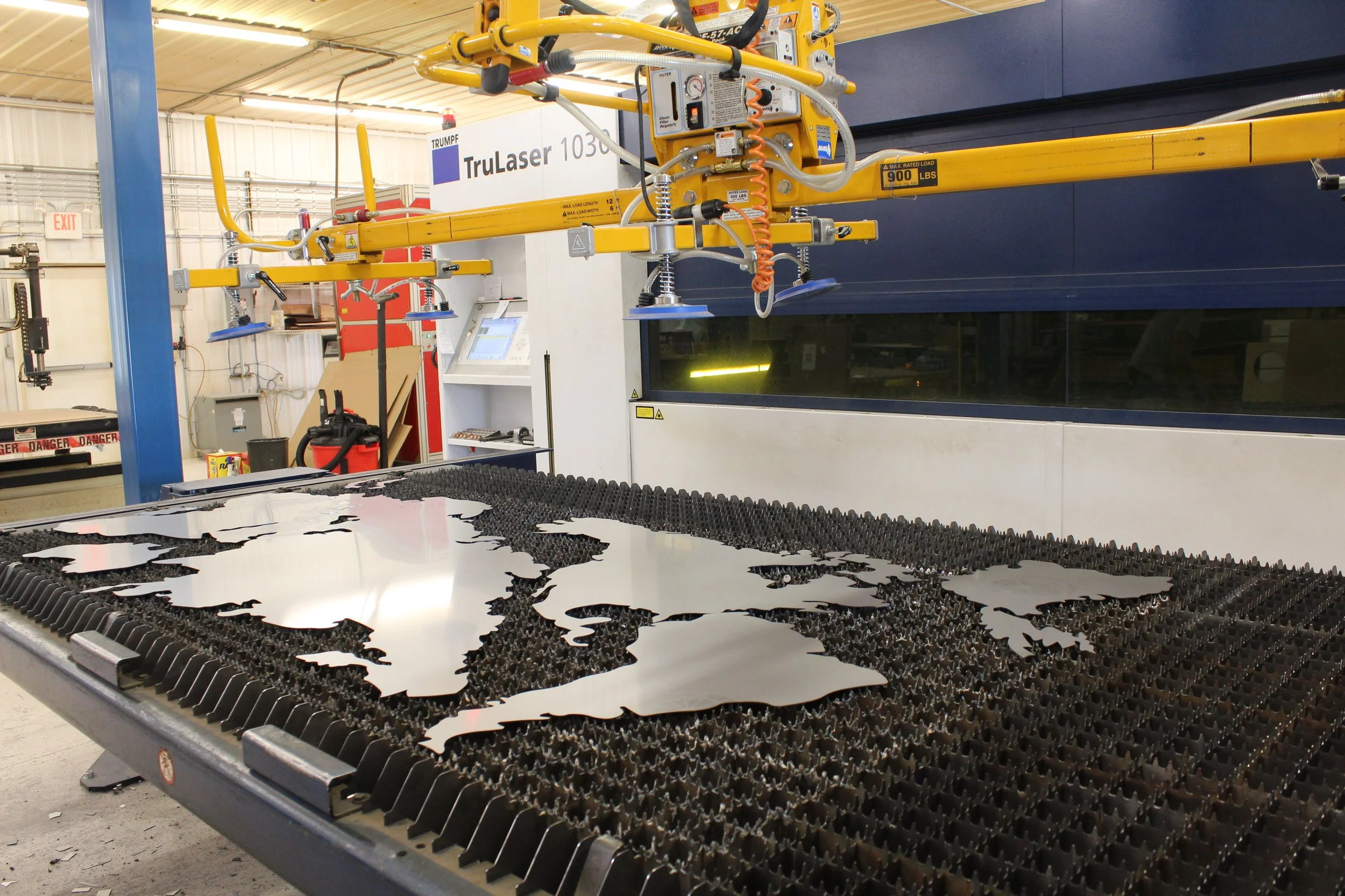 Our Trumpf fiber laser can process non ferrous, steel, stainless and aluminum